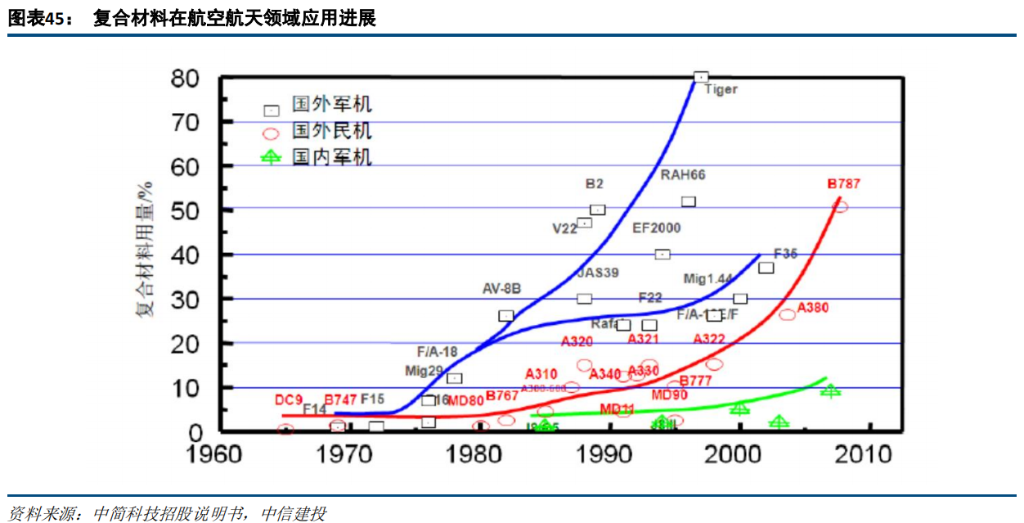 机数量增长,我国军机碳纤维复合材料应用将呈现逐年递增的趋势。